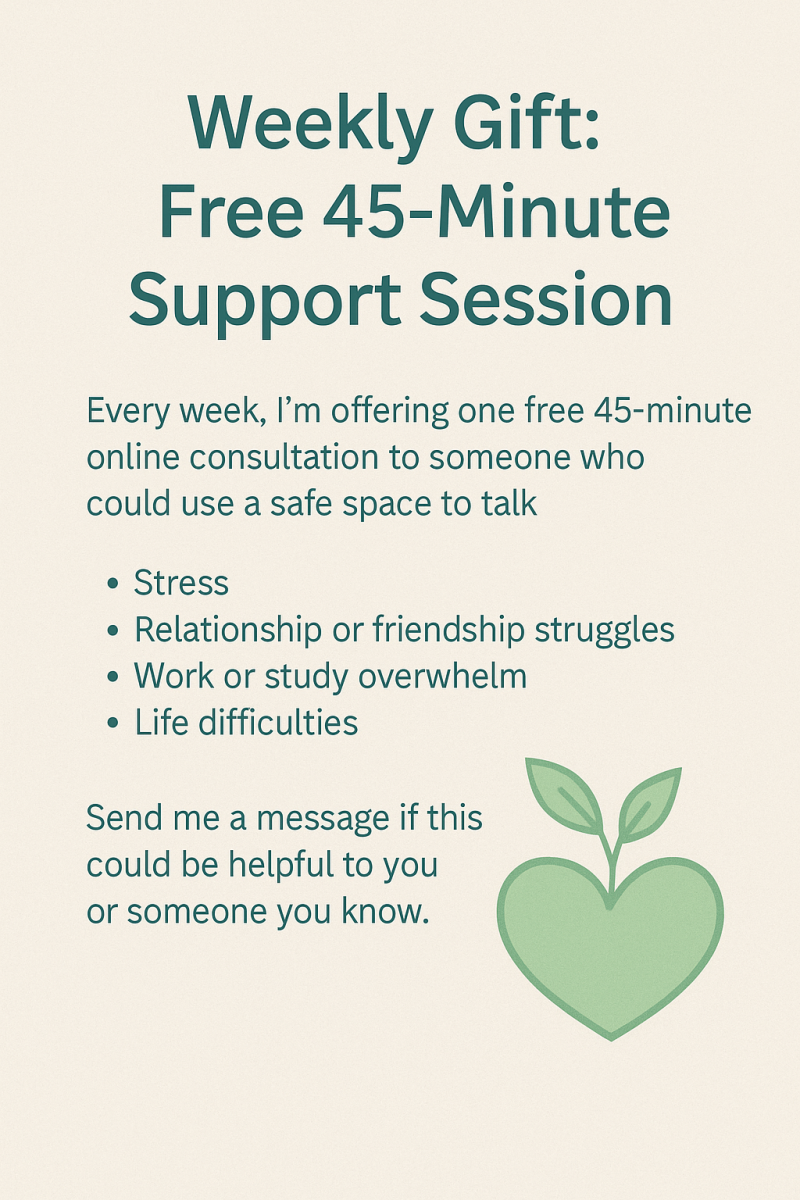 “I found the free support session to be incredibly helpful and insightful. The therapist was attentive and understanding, providing me with valuable tools to cope with my challenges.”
